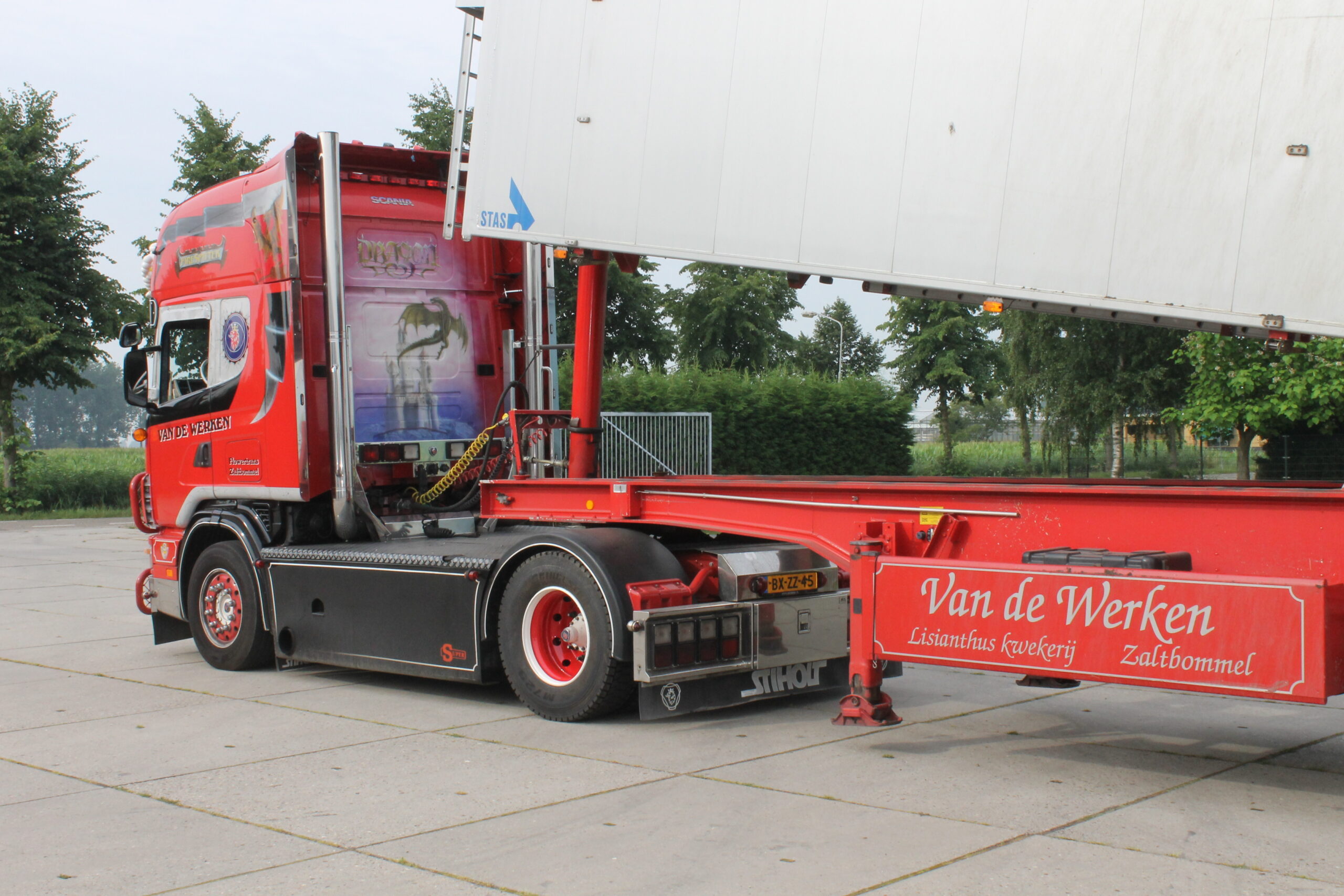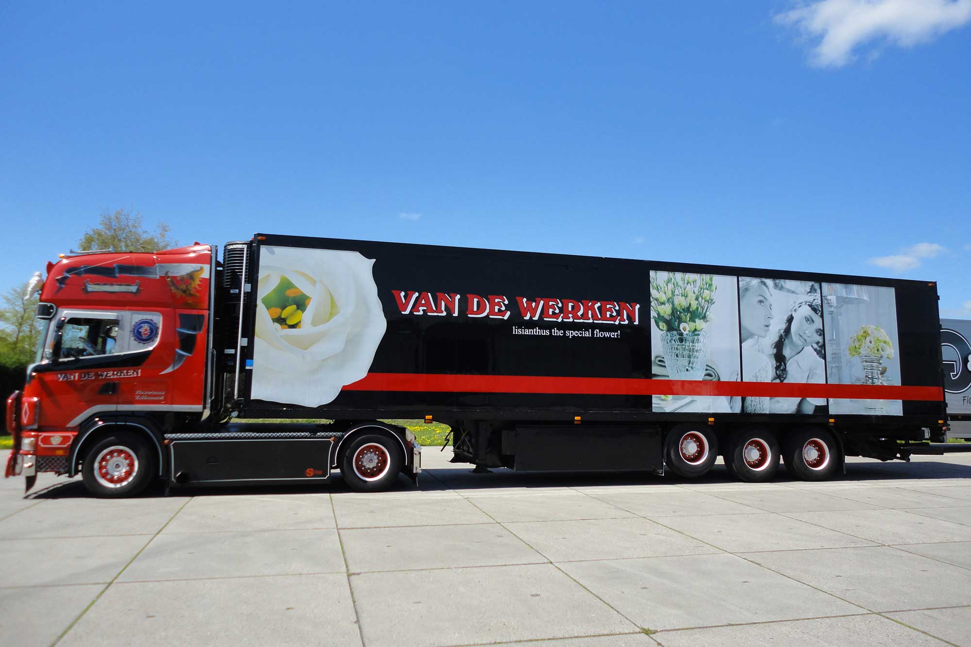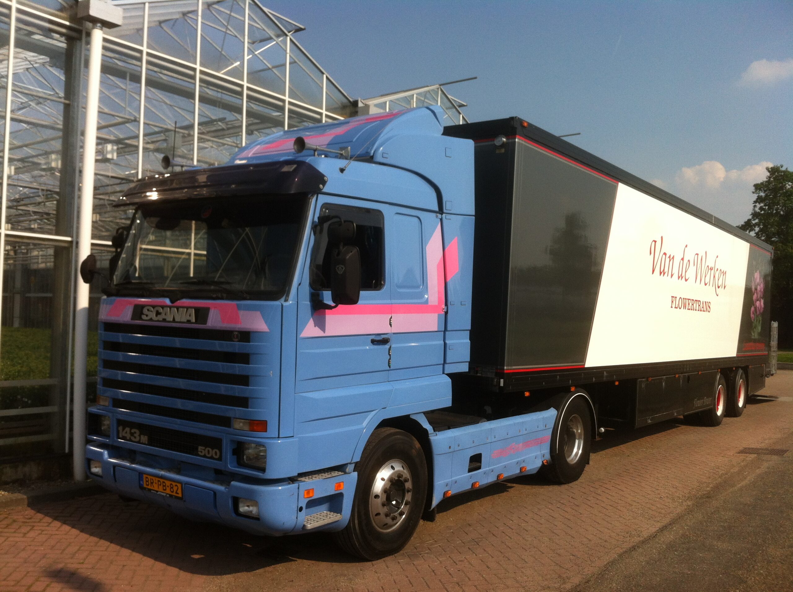 Het moest iets aparts worden en zodoende werd er een Scania 143 streamline v8 aangeschaft, een truck met een krachtige uitstraling. Niet lang daarna werd een geschikte bloementrailer gevonden, en zo was Van de Werken Flowertrans geboren. De bloementrailer werd in de kleuren van de truck gespoten, en de truck werd voorzien van diverse accessoires.